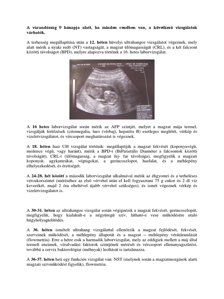 9 hetes magzat crl. 5 hét 4 nap. 9 hetes korban az embrió már szokott csuklani. A táblázatban foglalt értékeket csak támpontként szolgálnak hogy körülbelül mikor mekkora lehet a babád. Ez alapján megállapítható a terhességi kor amit a leleteken a grav s.