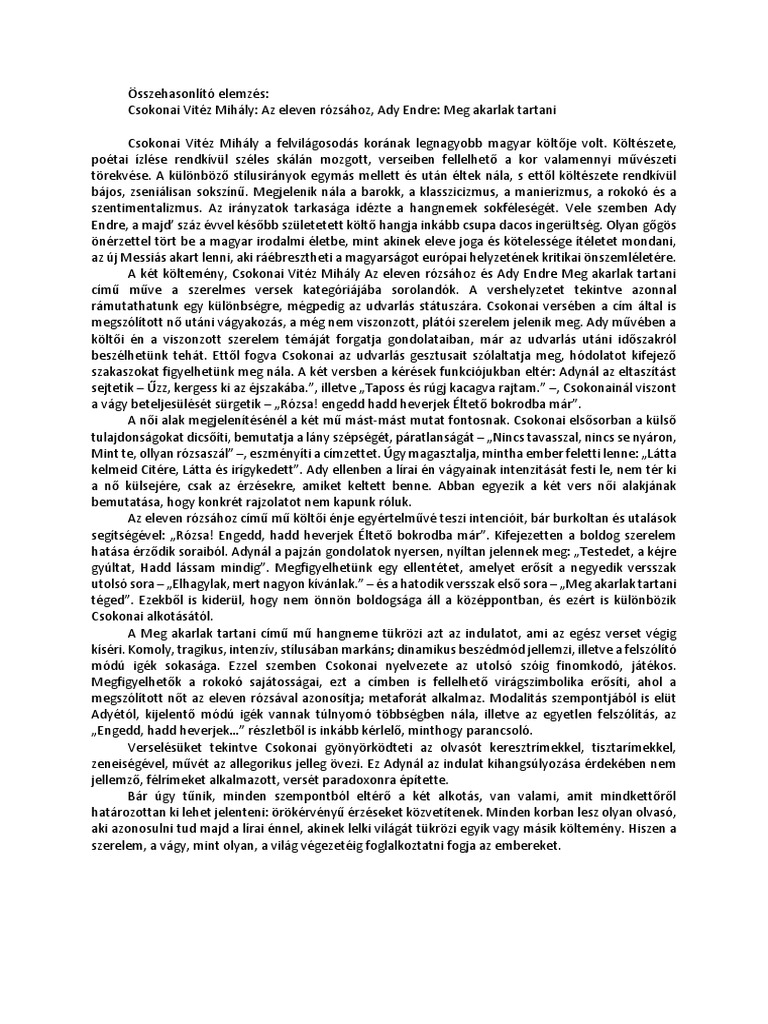 Osszehasonlito Elemzes Ady Endre Meg Akarlak Tartani Csokonai V M Az Eleven Rozsahoz