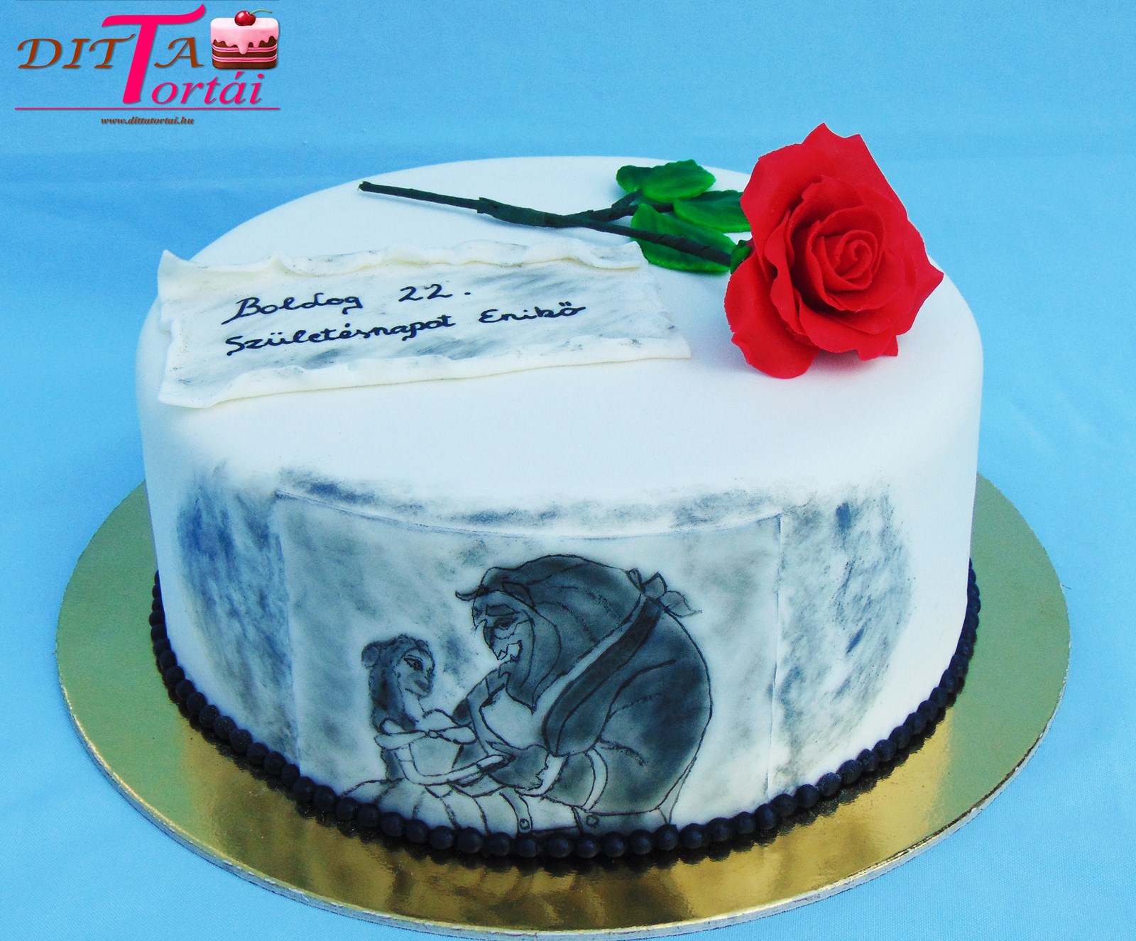 Szepseg Es A Szornyeteg Szuletesnapi Torta Beauty And The Beast Cake Birthdays Beauty And Beast Cake Belle Birthday Cake